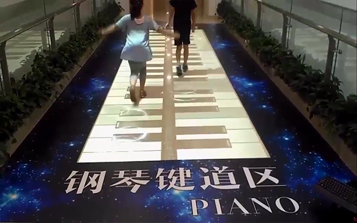 地面互動鋼琴是以動作捕捉核心技術(shù)為中心,并結(jié)合成熟的三維游戲引擎,將傳統(tǒng)的鋼琴琴鍵轉(zhuǎn)換為新奇的地面互動的高新技術(shù)產(chǎn)品。實(shí)現(xiàn)不需要真正的鋼琴琴鍵,就能讓玩家只需要通過肢體活動就能簡單直接地彈奏樂曲!