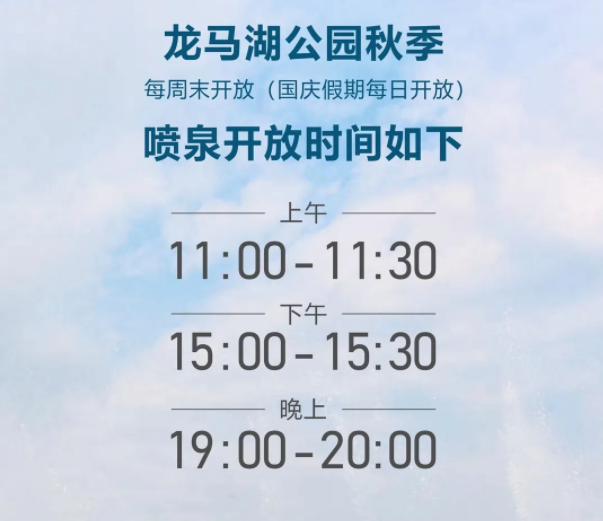 音樂(lè)噴泉每周末開(kāi)放(國(guó)慶假日每日開(kāi)放)。